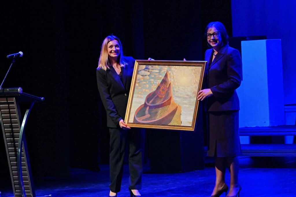 Direktorė Rasa Juškėnienė dėkoja mokyklos kolektyvui, mokiniams ir visai bendruomenei už turiningus 2025 metus ir teikia metų veiklos ataskaitą.