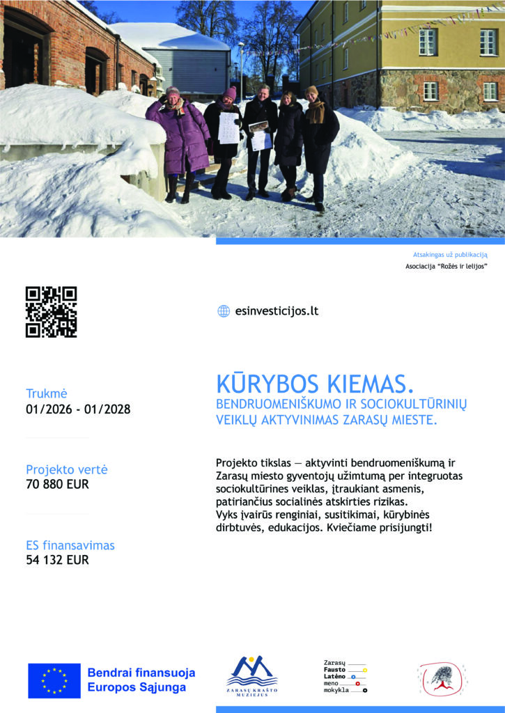 Taip gimė bendras projektas “Kūrybos kiemas. Bendruomeniškumo ir sociokultūrinių veiklų aktyvinimas Zarasų mieste”, kurio dėka, tikime, įvairaus amžiaus zarasiečiai ras progų kokybiškai pabendrauti ir dar labiau pamilti savo unikalų miestą.