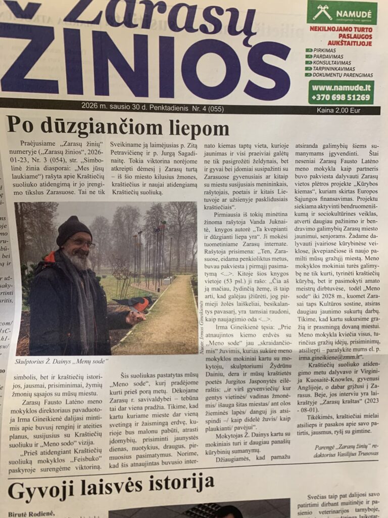 Į projekto veiklas bus kviečiami įsijungti įvairių kartų Zarasų miesto gyventojai, tarp jų – senyvo amžiaus asmenys ir mažiau galimybių turintis jaunimas. Pirmieji renginiai numatyti 2026 m. pavasarį. Atšilus orams, pasidalinsime konkrečiais kvietimais.
