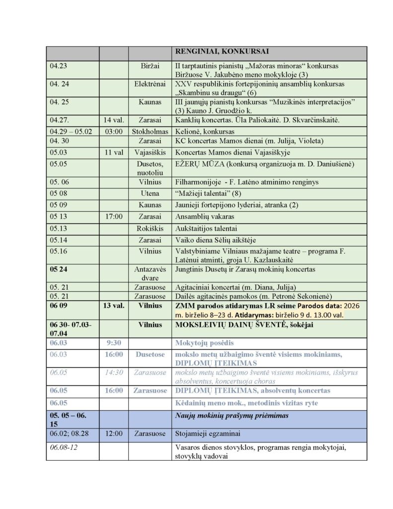 Uncategorized Gegužės mėn. atsiskaitymų ir renginių grafikas 2026-04-22 Irma Gineikienė Leave a comment Skelbiame gegužės ir birželio mėn. atsiskaitymų ir renginių tvarkaraštį